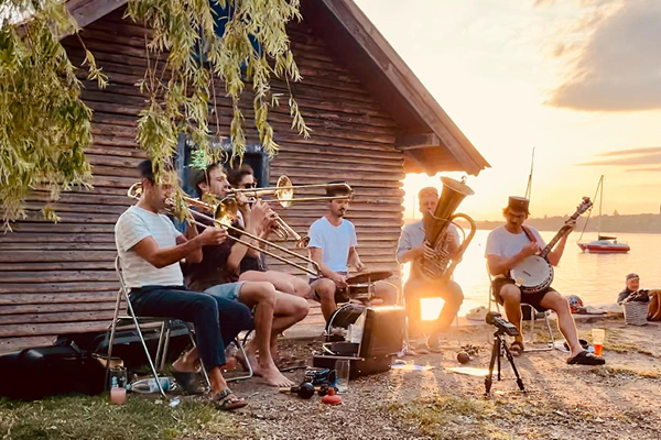 Die Münchner Band vermischt völlig ungeniert alte Tänze und Lieder mit neuen Stilistiken und Rhythmen. Im Programm hat die Band bairische Landler und Polkas, osteuropäische Klezmer- und Balkantänze, irische Drinking Songs, Jigs und Reels … Musikalisch wird diese wilde Mischung mit treibenden Ska- und Polkarhythmen gewürzt.